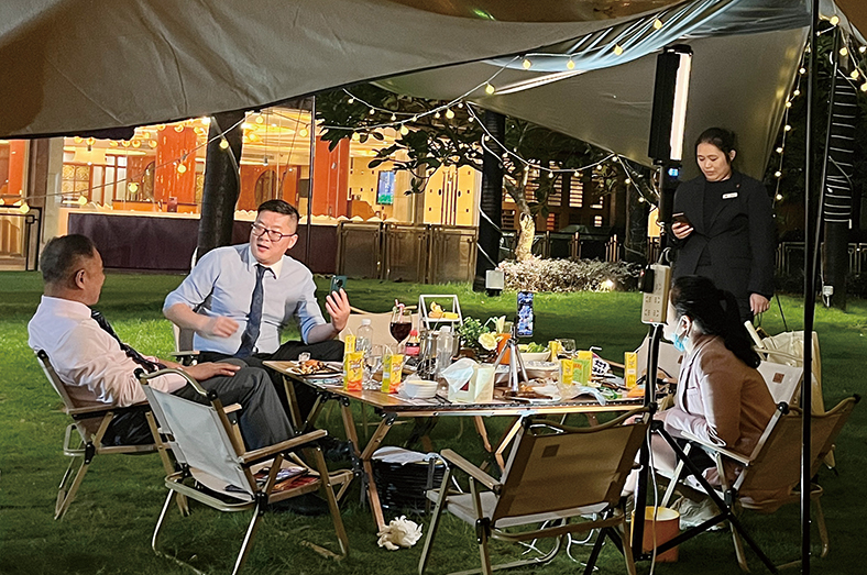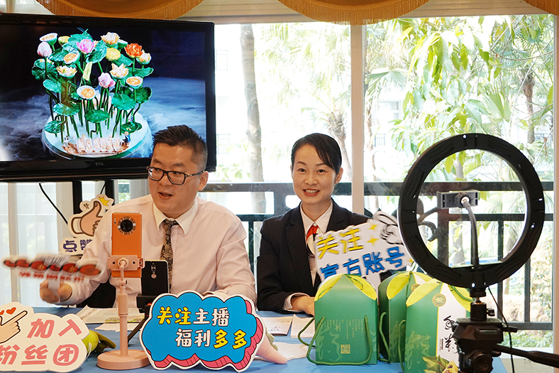 疫情三年,對酒店業的沖擊是前所未有的。在線下經營困難的情況下,很多酒店紛紛試水線上直播帶貨,例如塘廈三正半山溫泉酒店早在2020年4月就開始了線上直播模式,并且做得風聲水起,而橋頭三正半山酒店因為各方面原因一直沒有啟動。為補齊這一短板,2022年初,在橋頭三正半山酒店總經理李啟清的推動下,酒店直播才正式啟動。