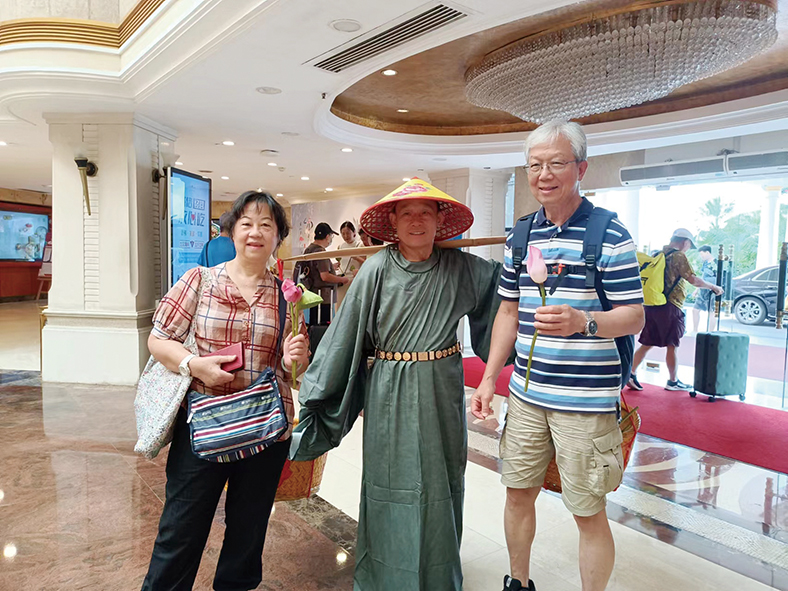 “一翁一蛙一扁擔(dān),兩筐菡萏惹人羨,贈(zèng)君一支映日荷,荷香飄逸半山情”。在《荷塘月色》背景音樂(lè)的氛圍中,身穿漢服的老翁肩挑竹筐,筐里擺放新鮮的荷花,身后跟著一群蹦蹦跳跳可愛(ài)的“小網(wǎng)紅蛙”。他們愉悅地穿梭在酒店的各個(gè)區(qū)域,為客人送上寓意 “吉祥如意、好運(yùn)蓮蓮”的荷花,吸引了眾多客人圍觀并合影留念。此外,網(wǎng)紅蛙們還在酒店大堂邀請(qǐng) “小客人”們一起進(jìn)行才藝表演互動(dòng),如:唱歌跳舞、詩(shī)詞背誦等。在萌寶樂(lè)園中,與小朋友們?cè)凇翱铸埧估恰钡木W(wǎng)紅音樂(lè)中一起手舞足蹈地歡快跳舞,大家玩得不亦樂(lè)乎,現(xiàn)場(chǎng)氛圍十分熱鬧,家長(zhǎng)朋友們紛紛拍照分享朋友圈。此活動(dòng)不僅深受大小朋友們的喜愛(ài),而且還提升了酒店的人氣和影響力。