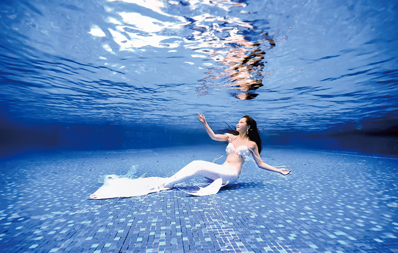 近年來,人們越來越追求健康,各種健身運動也備受關注,而其中最時尚的運動就是美人魚潛泳運動,吸引了不少愛美的人士,特別是女士的青睞。美人魚運動是集舞蹈、花樣游泳、自由潛、蹼泳、瑜伽和美感于一身的新潮運動項目。其簡單易學又趣味盎然,健康又具有美感,配上專業的水下攝影,每一個角落都是拍照打卡地。未來,酒店將開展美人魚教學,讓更多客人參與到這項運動中,共圓人魚之夢。