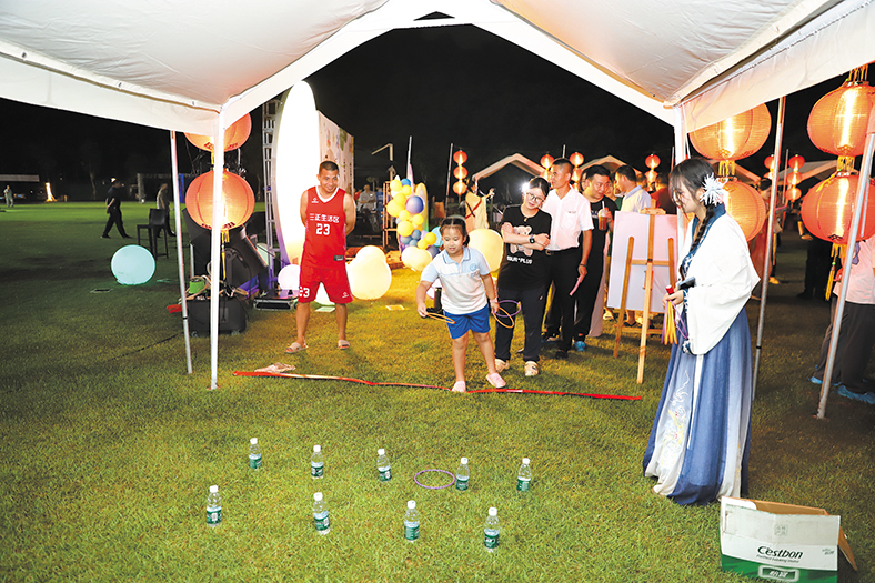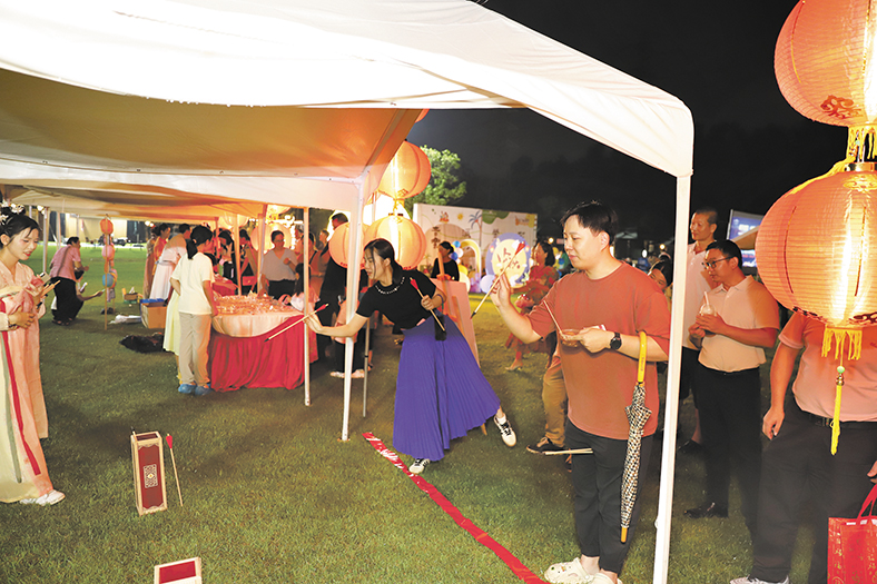 趣味游戲,親子同樂。一系列具有超強互動性的游戲吸引了眾多家庭與小朋友的參與,每個游戲攤前都排起了長隊。經典的投壺、射箭、夾月餅、釣花燈等闖關游戲讓家長和小朋友們玩得嗨翻天。通過這些富有挑戰性的游戲,參與者不僅能收獲樂趣,還能贏得精美的獎品。